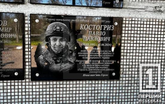 Сьогодні, 15 квітня, Криворізька гімназія №9 стала місцем пам'ятної події. На фасаді навчального закладу урочисто відкрили меморіальну дошку на честь випускника – Героя Павла Костогриза, який віддав своє життя, захищаючи Україну від російських окупантів.
