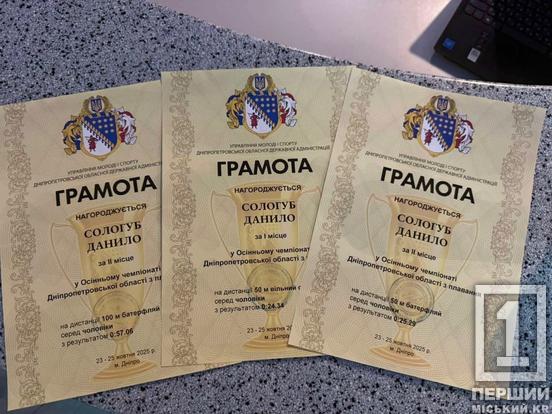 Отримав повний комплект нагород: Данило Сологуб з Кривого Рогу підкорив ЧО у Дніпрі з плавання