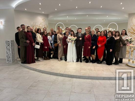 Особливого значення події додає те, що цей зал знову приймає молодят лише з осені 2025 року. Приміщення відновили після ворожого обстрілу, що стався у вересні 2023-го. Тут знову людно — підтримати нові родини приходять десятки друзів та рідних.