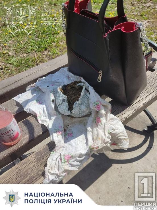 Під час розмови криворіжанка сама віддала поліцейським згорток із зеленою речовиною, схожою на наркотики.