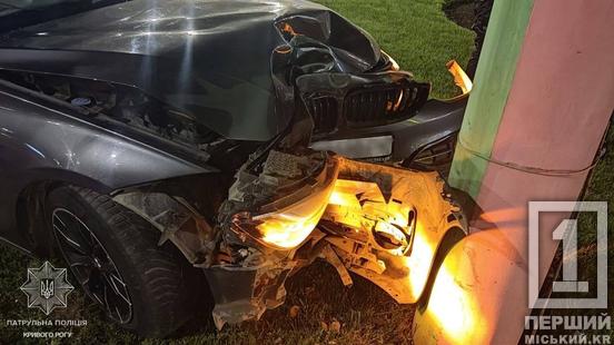 Влітав на кільце й втратив контроль: у Саксаганському районі BMW протаранив електроопору