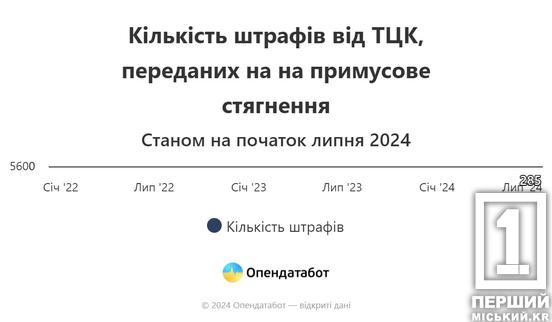 Близько 12 тисяч штрафів за порушення правил військового обліку від ТЦК отримала виконавча служба. За 6 місяців 2024 року їх більше, ніж за весь минулий рік, повідомляють аналітики «Опендатабот».