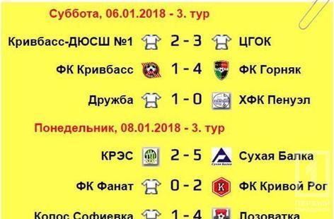 6 и 8 января в Кривом Роге прошли поединки 3-го тура Зимнего первенства города по футболу. Во всех шести матчах не было зафиксировано ни одной ничьей. Правда, обошлось без сенсаций.