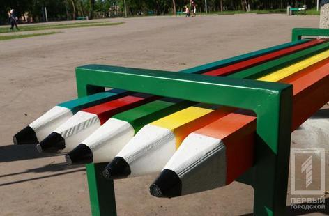 В Кривом Роге появились необычные сидения. В парке имени Гагарина установили оригинальные лавочки. Вместо обычных досок – разноцветные карандаши.