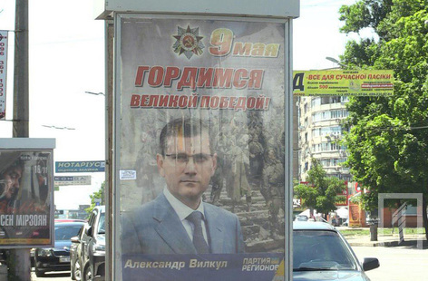 Пресс-секретарь Александра Вилкула Сергей Милютин назвал борды с изображением народного депутата и советской символики провокацией. На фотографии изображен портрет парламентария, а над головой Вилкула-младшего красуется надпись «Гордимся великой победой» и возвышается звезда с серпом и молотом. По словам господина Милютина, эта реклама не их.