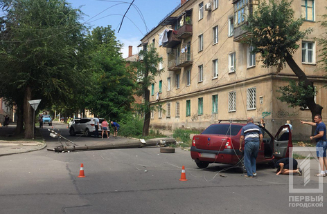 Автомобиль двигался по Днепровскому шоссе по направлению к выезду из города. Начал сдавать назад и наехал на электроопору. В происшествии никто не пострадал. Упал только столб.