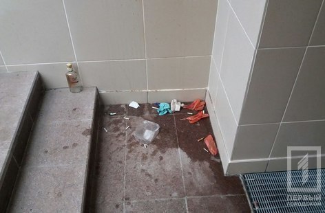 Отвратительную картину можно было наблюдать при выходе к скверу Освободителей. В углу стояла бутылка водки, обёртки от сосисок и засохшие лужи.