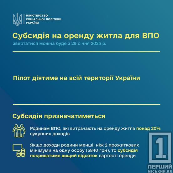 Тепер субсидія буде доступною для всіх внутрішньо переміщених осіб. Без залежності від регіону проживання. Головне відповідати фінансово-майновим критеріям. Право на субсидію матимуть сім’ї, у яких витратна стаття на оренду житла йде у 20+% сукупного доходу. До правок був показник у 30%. Розмір розраховуватиметься індивідуально, ось що братимуть до уваги: