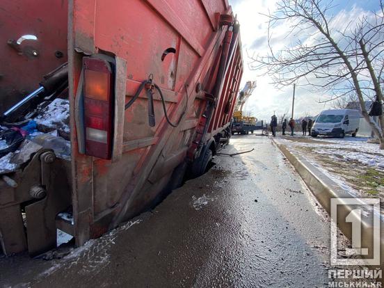 У Кривому Розі краном намагаються дістати сміттєвоз, що потрапив у дорожній «капкан»