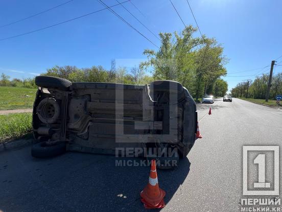 У спробі уникнути зіткнення водій Renault зачепив бордюр, втратив керування й авто перекинулося на бік.