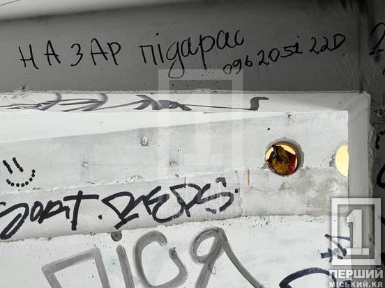 «П*ся», «Л*ох», «Назар п*д*рас» та інші подібні написи говорять про відсутність інтелекту у «художників». А ще й про повну неповагу до мешканців Кривого Рогу. Вчинок не залишиться безкарним. Адже в один момент руку з маркером чи балончиком огорнуть поліцейські наручники.