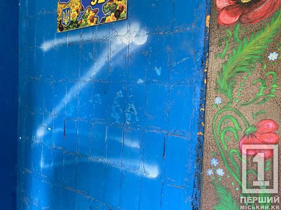 У Кривому Розі якась хвора на голову людина намалювала російську «зетку» на дверях одного з під’їздів на Зарічному. Її посміли помістити на український прапор, який прикрашав вхідну групу.