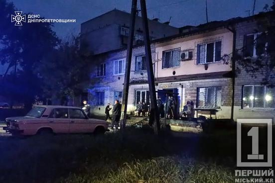 Криворізьких рятувальників повідомили про пожежу о 02:31. Вона виникла у багатоквартирному будинку на вулиці Кармелюка в Інгулецькому районі. Прибувши на місце події, вони встановили, що на другому поверсі чотириповерхової будівлі горіло домашнє майно на балконі та всередині квартири. Загалом займання охопило площу в 10 квадратних метрів. Під час ліквідації пожежі ДСНСники вивели сходовою клітиною двох мешканок під'їзду, а також на ношах винесли на свіже повітря 83-річну жінку. На щастя, нікому допомога медиків не знадобилася.