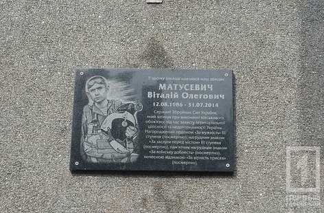 В Кривом Роге открыли мемориальную доску в честь погибшего бойца АТО Виталия Матусевича