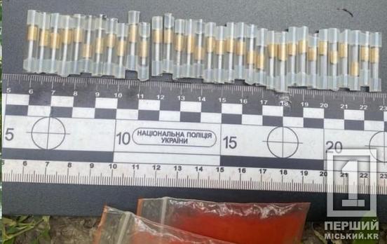 Під час поверхневої перевірки у нього виявили два сліп-пакети з речовиною рослинного походження. Оглянули поліцейські й кущі, де виявили 33 сліп-пакети з пластиковими трубочками, наповненими кристалічною речовиною.