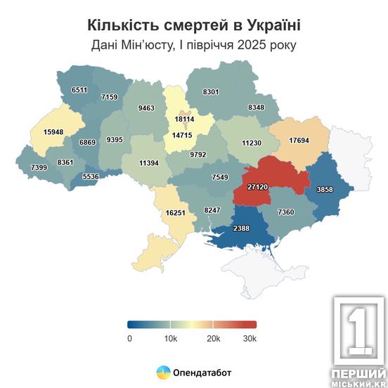 Кожна дев’ята людина помирає у Дніпропетровській області. За перше півріччя у засвіти у нас пішло 27 120 громадян. Показник вважають найбільшим в Україні. Також в антилідерах Київ з 18 114 та Харківщина – 17 694.