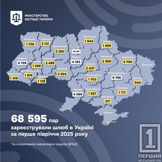 Попри війну, тривоги та небезпеки війни, українці продовжують вірити в любов і будувати родини. За перші шість місяців поточного року в Україні було зареєстровано майже 69 тисяч шлюбів. І одну з найвищих цифр за регіонами має Дніпропетровщина.