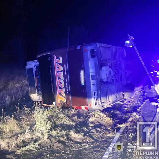 На трасі Н-11, сполученням Дніпро-Кривий Ріг-Миколаїв, у ДТП потрапив автобус. У салоні були діти.
