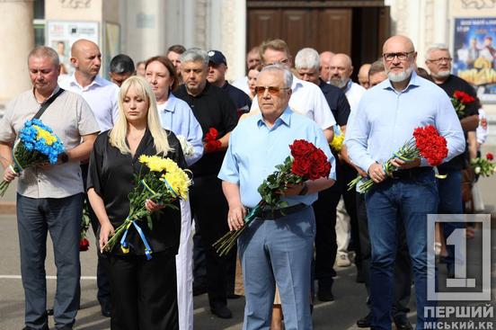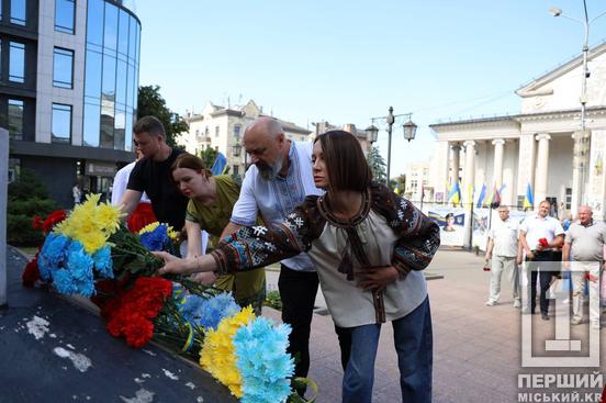 У Кривому Розі напередодні 34-ї річниці Незалежності України та Дня Державного Прапора України керівництво міста, представники громадських та благодійних організацій спільно з військовослужбовцями вшанували загиблих хвилиною мовчання та поклали квіти до підніжжя пам’ятника Т.Г. Шевченку.