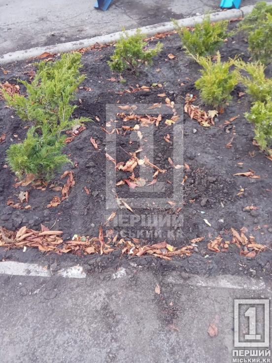 З місця, де нещодавно завершили масштабне озеленення, невідомі викопали три кущі ялівцю козацького і стільки ж стахісу візантійського. Рослини були частиною гармонійної ландшафтної композиції, покликаної покращити естетичний вигляд і мікроклімат району.