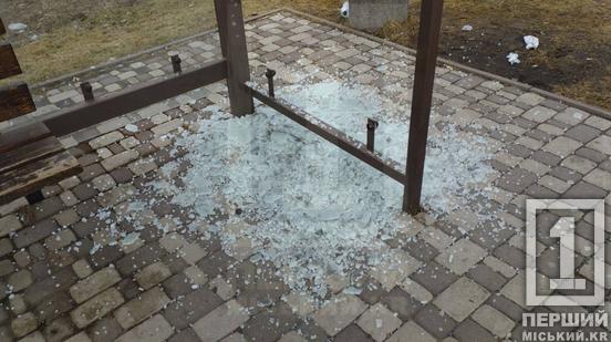 У Кривому Розі вандали понівечили зупинку «Криворізька міська лікарня №2». Хулігани вщент розбили одну зі скляних панелей павільйону, залишивши купу гострих уламків просто на тротуарі.