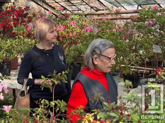 Для багатьох криворіжців візит до ботсаду в цей період став важливою традицією. Катерина Ніконівна, якій нещодавно виповнилося 88 років, завітала помилуватися квітами разом із великою родиною: невістками, онуками та правнуками. Жінка згадує, як десятки років тому сама купувала тут рослини для роботи та дому. Для неї азалії – це спосіб зустріти весну трохи раніше, навіть коли сил на довгі прогулянки вже бракує.