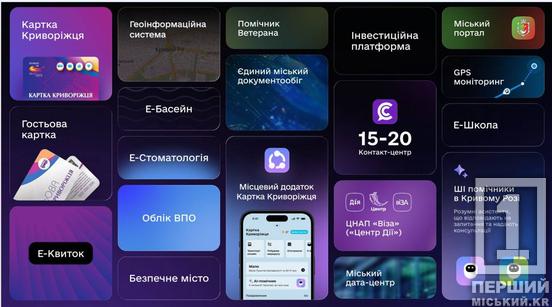 Одним із наших найуспішніших проєктів є багатофункціональна «Картка криворіжця». Вона об’єднує транспорт, медицину, освіту, соціальну підтримку та адмінпослуги. Ми запустили зручний мобільний застосунок «Картка криворіжця», який додатково об’єднує: еШколу, контакт-центр 15-20, моніторинг повітря та інтерактивні карти.