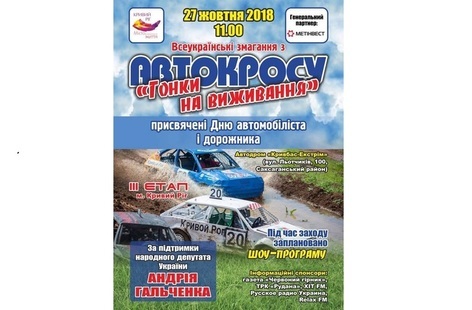 18 августа состоялся второй этап гонок на выживание в Кривом Роге. Участие приняли 13 криворожан и один гонщик из Запорожья. Победителем соревнований по автокроссу стал криворожанин Александр Кулинич под номером 100.