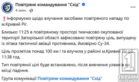 Она пролетела более 100 км и попала в районе Кривого Рога в 11:38.