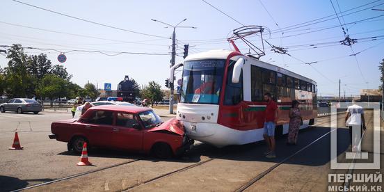 Возле вокзала Кривой Рог-Главный столкнулись «Жигули» и трамвай