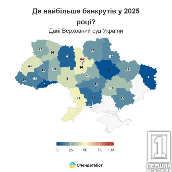 Упомянутый последний показатель на 33% больше по сравнению с аналогичным периодом прошлого года. В 2024 году было 926 дел о банкротстве. Однако 2025 год рискует догнать указанную цифру. Больше всего банкротов зафиксировано в Киеве – 90. Днепропетровская область имеет 33.