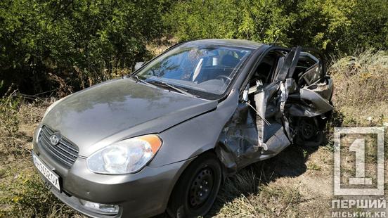 По предварительной информации, белый Lexus двигался в направлении Кривого Рога по левой полосе. В то же время, темный Hyundai, который ехал в попутном направлении, но в крайней правой полосе, неожиданно решил развернуться назад.