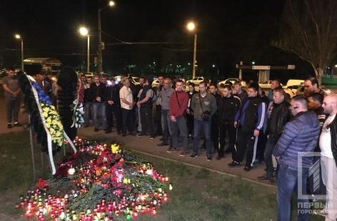 На перекрёстке улицы Героев АТО и проспекта Металлургов шофёры почтили жертв аварии. Водители сигналили, когда ехали. В колонну вошли более 50 автомобилей. Таксисты провели минуту молчания.