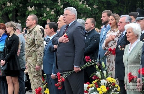 На празднование 9 мая у вечного огня собрались несколько тысяч горожан, в том числе нардепы от «Оппозиционного блока». Во время исполнения песни «Верните память» хореографический номер исполнял детский коллектив.