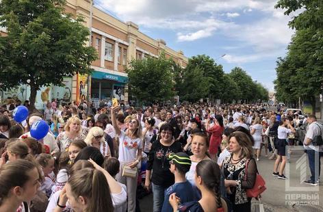 Патриотический флешмоб в Кривом Роге проходит уже в пятый раз. Горожане в национальной одежде начали собираться на площади Освобождения. Затем колонна людей пройдёт по проспекту Почтовому мимо театра им. Тараса Шевченко. Живая цепочка следует в центр парка им. Фёдора Мершавцева.