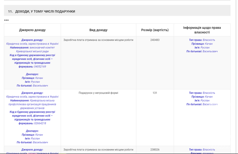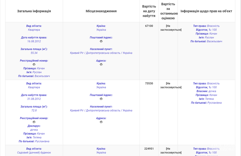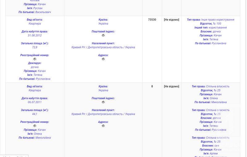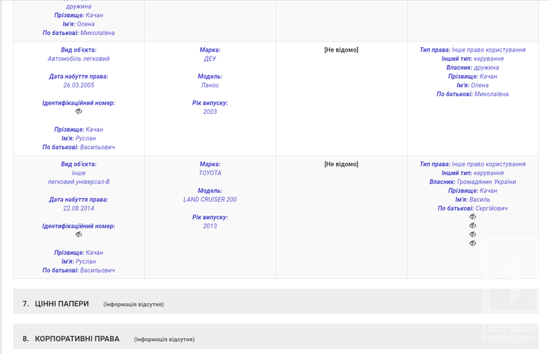 Избранник коммунальщицы, Руслан Качан, глава отдела аудита горсовета. Простыми словами – чиновник должен следить за тем, как расходуются деньги на коммунальных предприятиях, в том числе и на «Теплосети». С зарплатой 240 000 гривен в год, тоже декларирует автомобиль премиум класса Toyota Land Сruiser, стоимостью почти полтора миллиона гривен. Также в документе значится собственная квартира чиновников на улице Сичеславская, и ещё одна квартира на дочери. Но в исполкоме горсовета говорят, нечасто видят чиновника на рабочем месте.