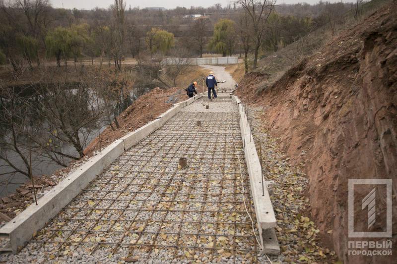 Дорога проходит на высоте двадцати метров по берегу карьера. По краю обрыва каждый день сотни жителей МОПРа через парк Мершавцева идут в центр Кривого Рога. Работы по ремонту дороги начались в ноябре. Организовал процесс и нашел финансирование нардеп Константин Усов.