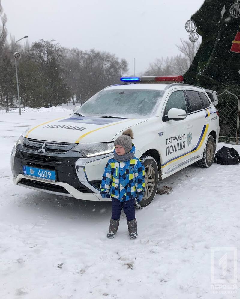 Встреча с патрульными проходила возле главной ёлки Кривого Рога – в парке Героев. Маленькие криворожане смогли поиграть в патрульной машине, сфотографироваться со спецсредствами и пообщаться с копами. Всем ребятам подарили сладости.