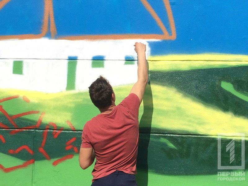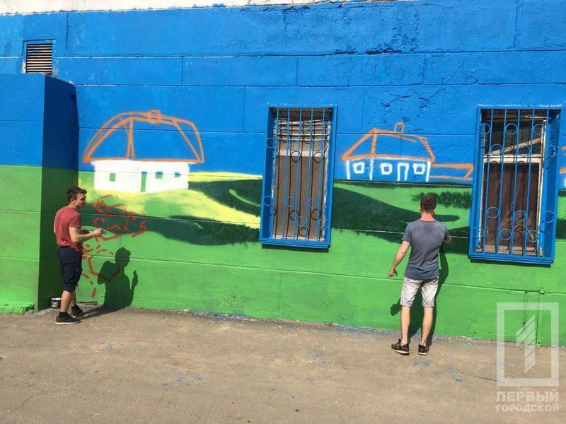 «Украинский дворик»: в Кривом Роге на теплораспределительном пункте художники создают мурал