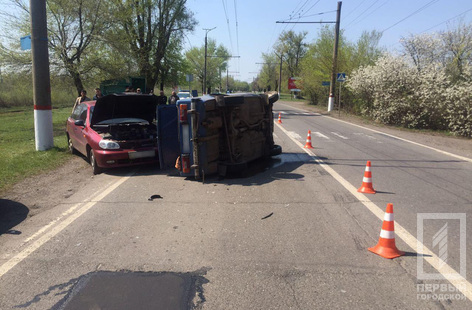 ДТП случилось на трассе ЦГОКа. На дороге не разминулись «ВАЗ 2106» и Daewoo Lanos. От удара советское авто перевернулось на бок.