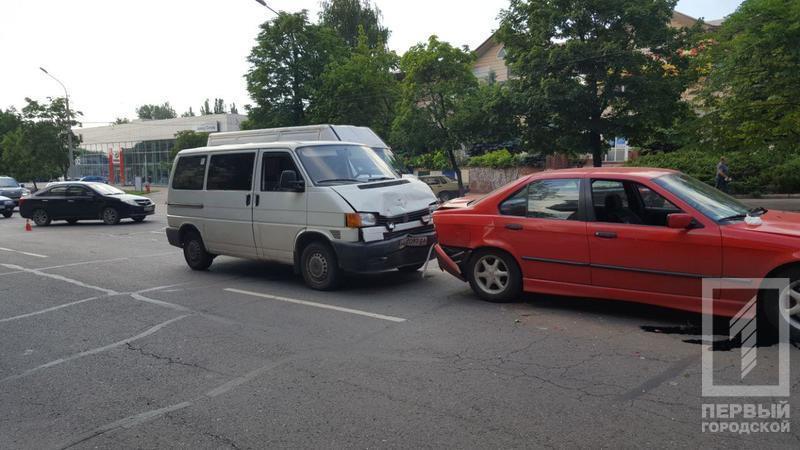 После удара у микроавтобуса смяло капот, а у BMW повредился передний и задний бамперы.