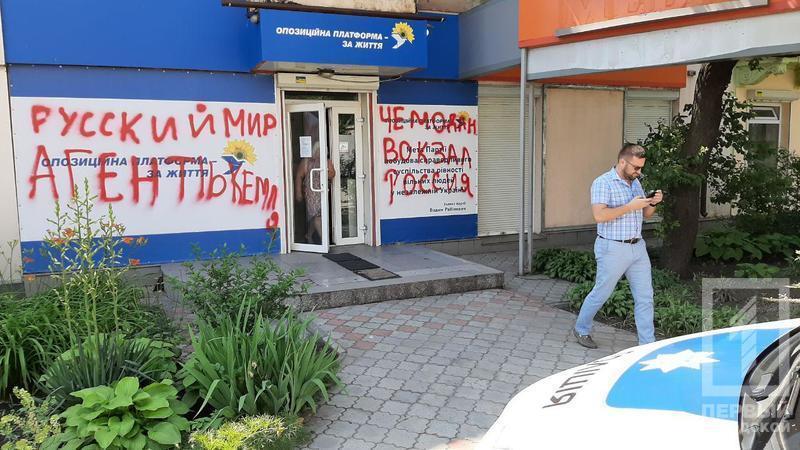Утром 14 июня несколько десятков неизвестных напали на офис криворожской ячейки «Оппозиционная платформа – За жизнь» на проспекте Металлургов. Налётчиков было около 20 человек, они скрыли свои лица под масками. Злоумышленники избили сотрудников, и разрисовали стены баллонами с краской.