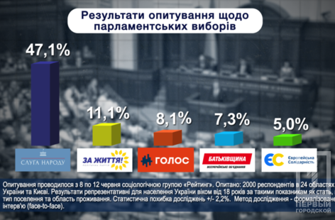 С 8 по 12 июня прошёл опрос от социологической группы «Рейтинг». Эксперты проводили анкетирование о том, за какую партию на внеочередных выборах в Раду проголосовали бы украинцы, если бы день волеизъявления был в ближайшее время. На первом месте неизменно лидирует партия «Слуга Народа». Её поддержать собираются около 47,1% людей, которые определились с выбором.