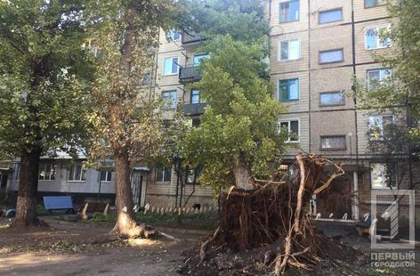 2 июля в Саксаганском районе из-за сильного урагана рухнули два тополя. Они зацепили 12 машин. Деревья также оборвали линию электропередач.
