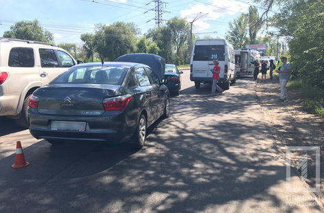 Авария произошла на клеверной развязке в районе автовокзала. Chevrolet Aveo съезжал с объездной дороги на Днепровском шоссе. По словам очевидцев, водитель притормозил, пропуская машины на главной дороге. В этот момент в него врезалась маршрутка. В салоне общественного транспорта были пассажиры, двум женщинам потребовалась медицинская помощь. У одной диагностировали ссадины и ушибы, поэтому её отпустили домой. Вторая пострадавшая получила травму шеи, горожанку увезли в «тысячку».