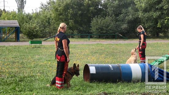 Также в масштабах соревнований прошли и показательные выступления по работе со снарядами. Их продемонстрировали кинологи-участники Криворожского отряда союза самаритян-кинологов Украины. На сегодня в нашем городе только два кинологических расчёта имеют подготовку к аттестации по международному стандарту ASB и допуск к работе в чрезвычайных ситуациях, а также в кинологических поисках пропавших.