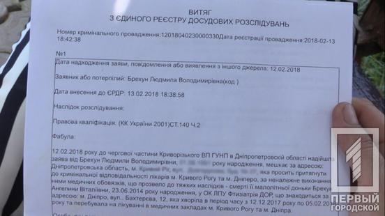 Людмила Брехун рассказывает, что в выписках после болезни не оказалось половины препаратов, которыми лечили её ребёнка. А некоторые документы не удалось найти. По словам матери, полиция самостоятельно не открывала уголовное дело. Расследовать смерть ребёнка начали только после того, как женщина обратилась в суд. Дело открыли по части 2 статьи 140 Уголовного кодекса «Ненадлежащие исполнение профессиональных обязанностей медработником, которое повлекло тяжёлые последствия для несовершеннолетнего».