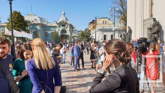 29 августа в 10:00 должно начаться первое заседание Верховной Рады нового созыва. На утреннем торжественном заседании нардепы примут присягу. Утром под зданием парламента собрались митингующие с плакатами.
