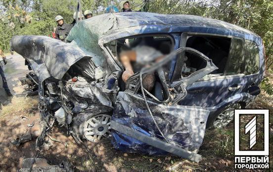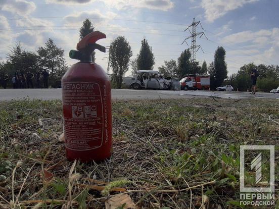 На выезде из Кривого Рога столкнулись два автомобиля. После они начали гореть. В происшествии погибли трое мужчин. Участок дороги, где случилось ДТП, перекрыт. Машины там не пропускают.