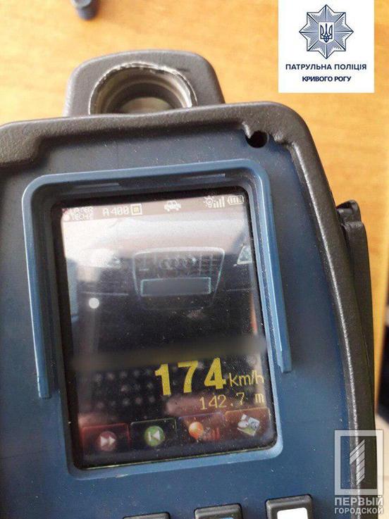 Инспекторы из Днепра передали ориентировку на водителя Audi, который мчался на большой скорости в сторону Кривого Рога. Нарушение зафиксировали специальным прибором TruCam на участке, где действовало ограничение. Прибор показал скорость в 174 км/час.